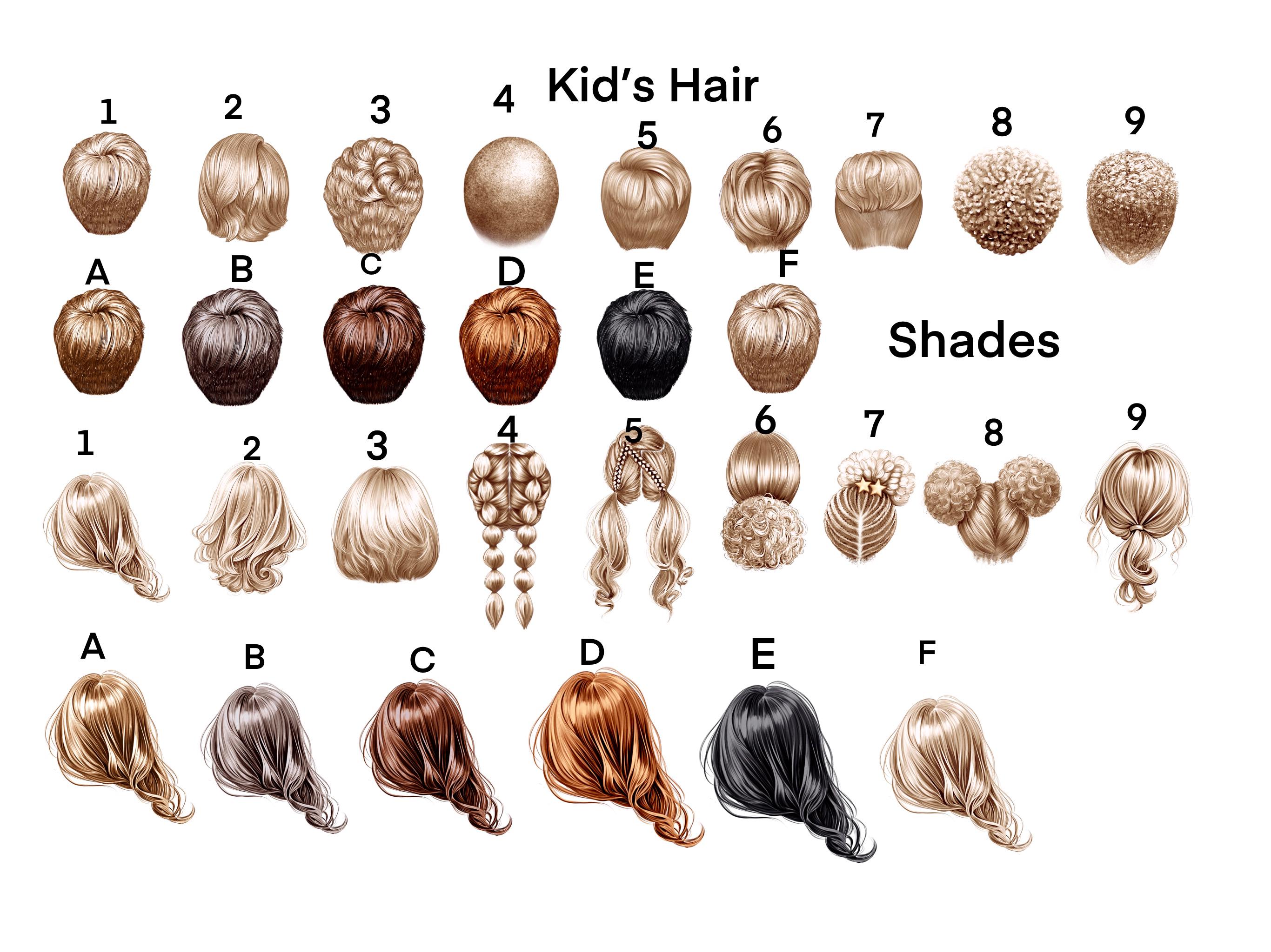 Each part of the character (like hairstyle, outfit, skin tone, etc.) has a number. When you’re personalizing your order, just tell me the numbers for each feature you'd like — it’s like building your own little character!